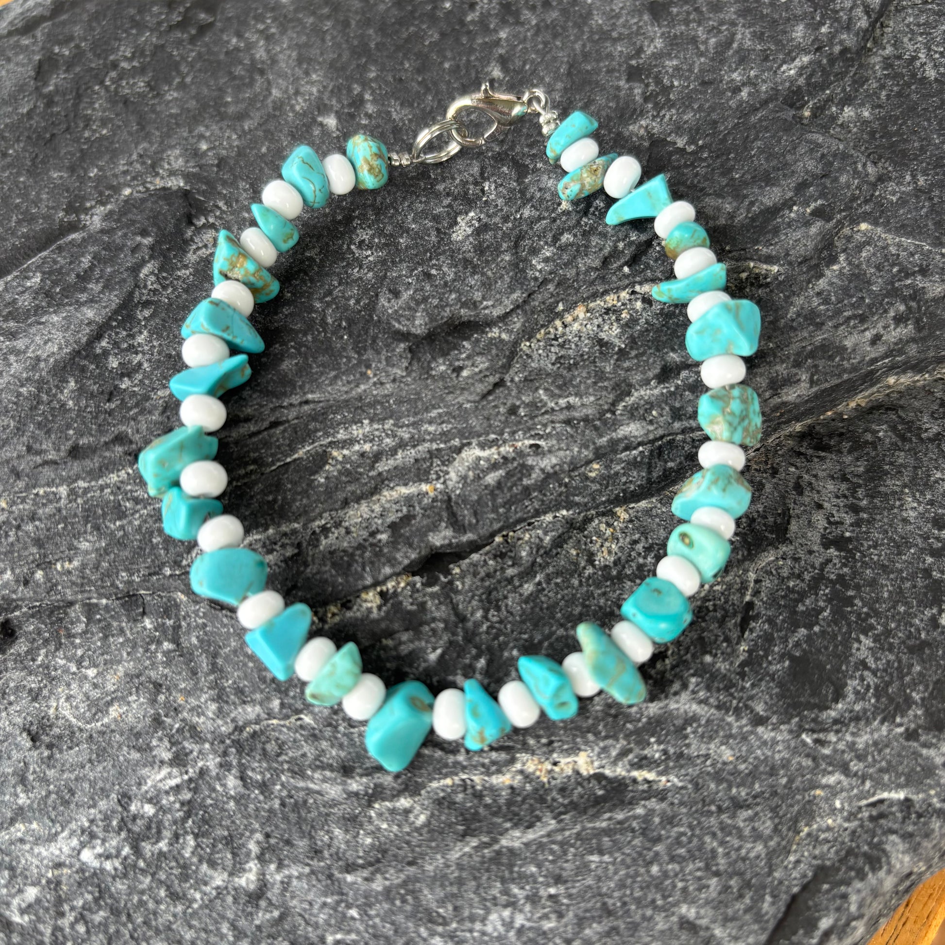 Dieses Amazonit-Armband vereint natürliche Schönheit mit zeitloser Eleganz. Die sanft schimmernden weißen Perlen bringen Frische und Leichtigkeit, während der silberne Verschluss für sicheren Halt und edlen Glanz sorgt. Ideal für Liebhaber feiner Schmuckstücke, die Wert auf Qualität und Stil legen.