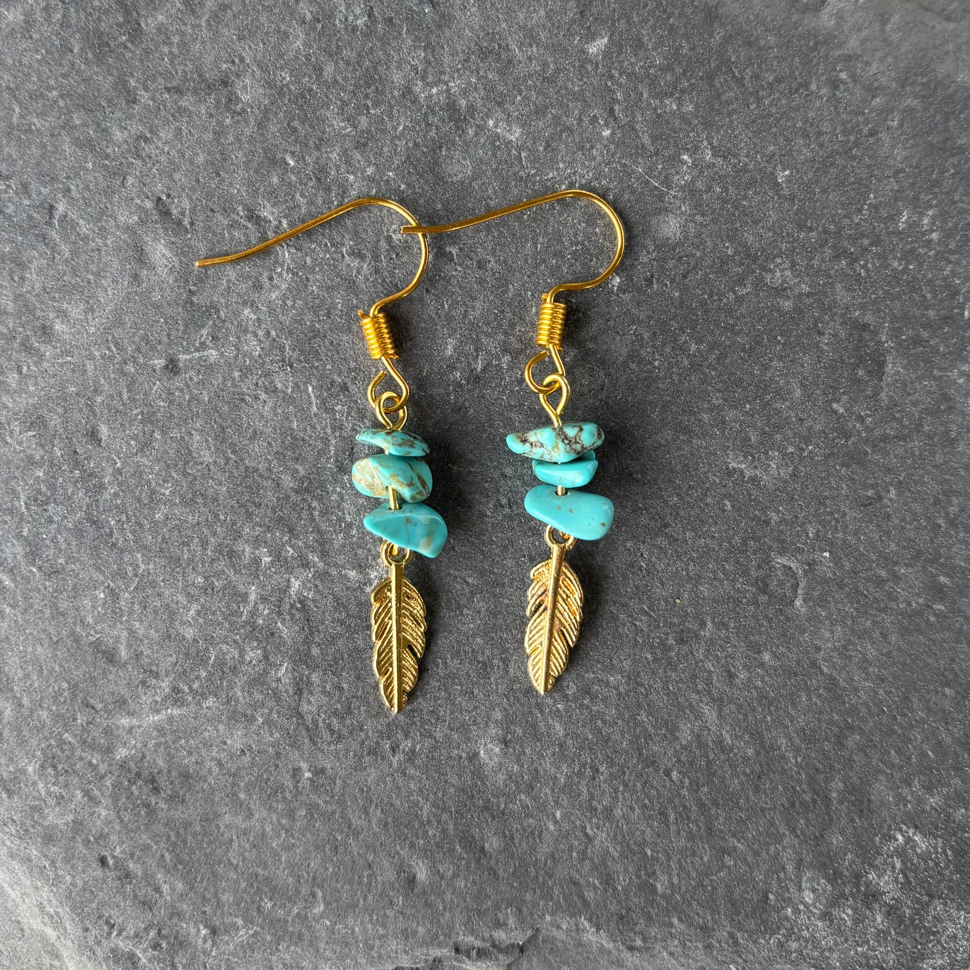 Amazonit Ohrringe mit goldfarbenem Federanhänger verbinden natürliche Eleganz mit kunstvoller Verarbeitung. Der sanfte Blauton des Amazonits ergänzt das warme Gold des Anhängers und sorgt für einen harmonischen Look. Diese Ohrringe sind ideal für alle, die feinen Schmuck mit einem Hauch von Individualität schätzen. Sie passen zu sowohl legeren als auch formellen Outfits und setzen stilvolle Akzente. Durch ihr leichtes Design bieten sie angenehmen Tragekomfort den ganzen Tag über.